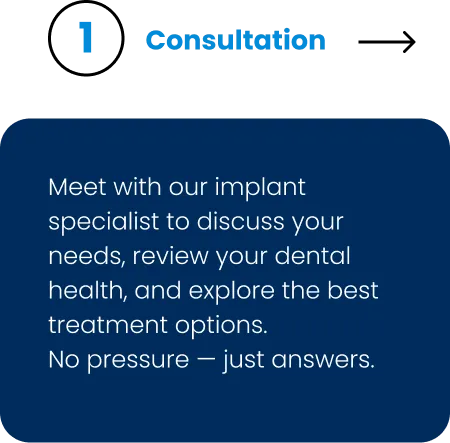 Meet with our implant specialist to discuss your needs, review your dental health, and explore the best treatment options.