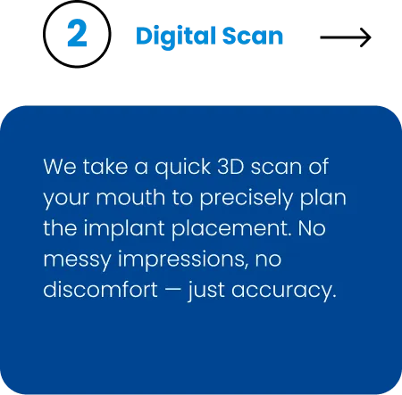 We take a quick 3D scan of your mouth to precisely plan the implant placement. No messy impressions, no discomfort — just accuracy.